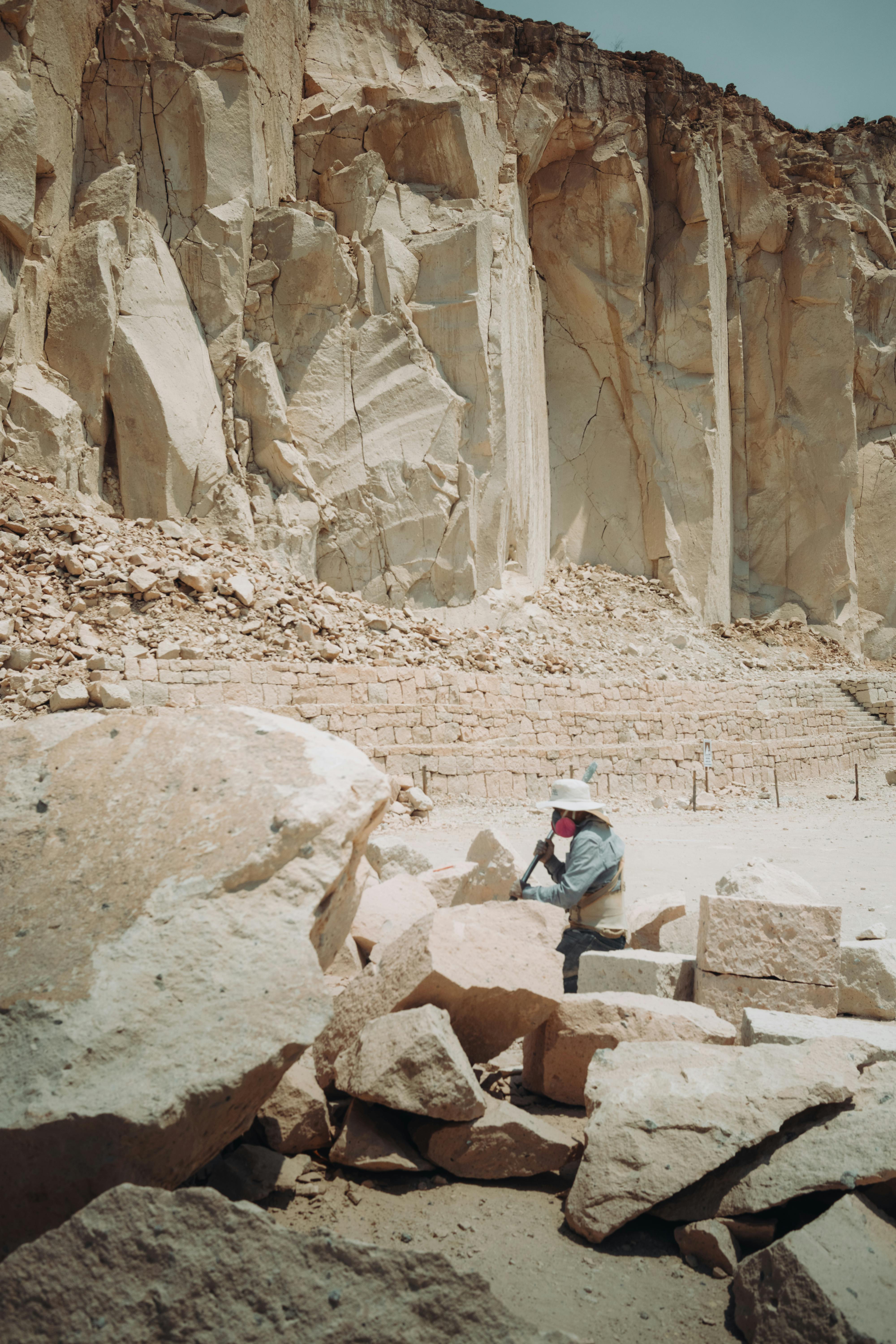 Fifteen years of working at quarries directly with splitters and chisels, and the specific middle-scale that turns out to work.